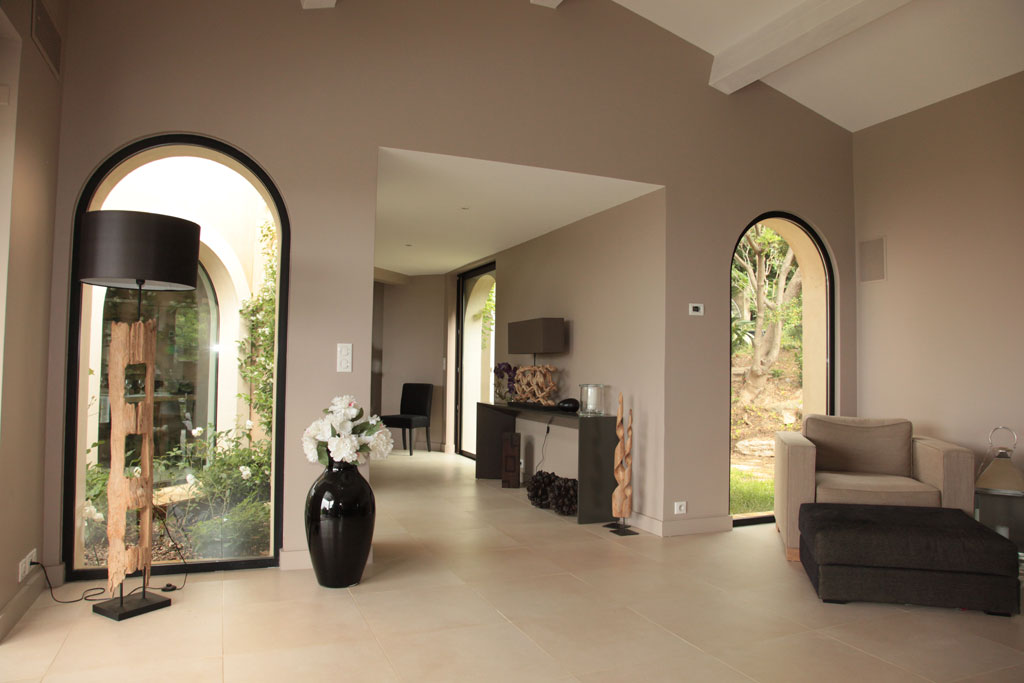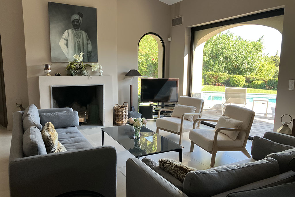 Le salon de 50m2 vous fera profiter d'une magnifique vue mer grâce à de grandes baies vitrées à galandage. Meublée de confortables canapés et fauteuils, cette belle pièce est munie d'une cheminée feu de bois qui agrémentera vos soirées.