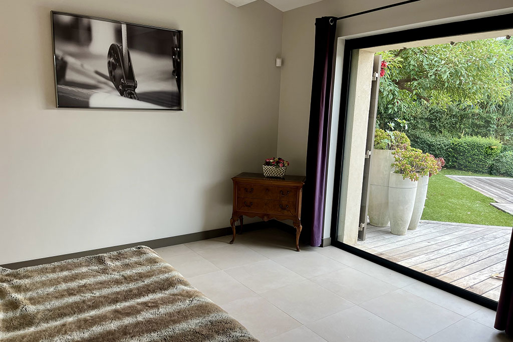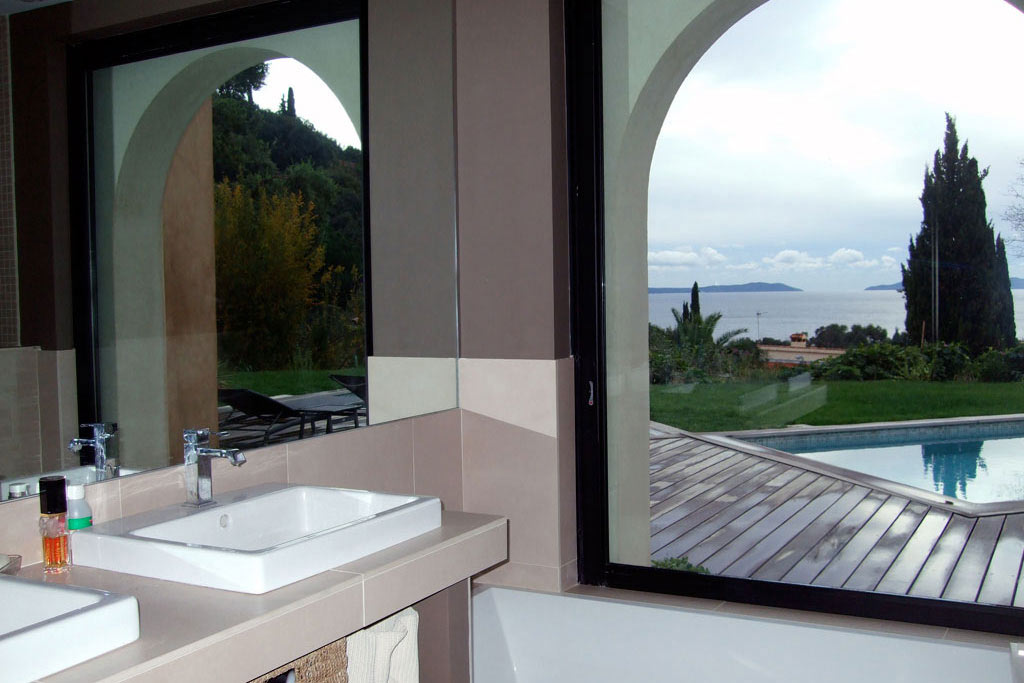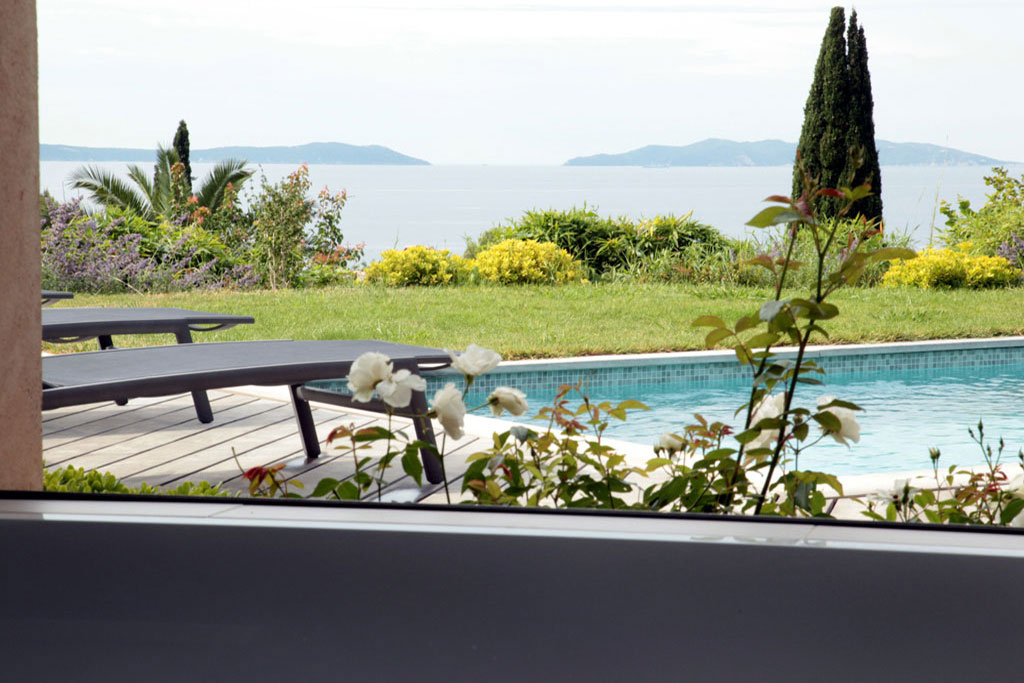 L'espace parents vous garantira le calme. De votre lit, vous découvrirez une vue imprenable sur les Iles d'or. Vous accéderez à la salle de bain par le dressing. D'une spacieuse baignoire, vous profiterez d'une très belle vue sur la mer grâce à sa baie coulissante.